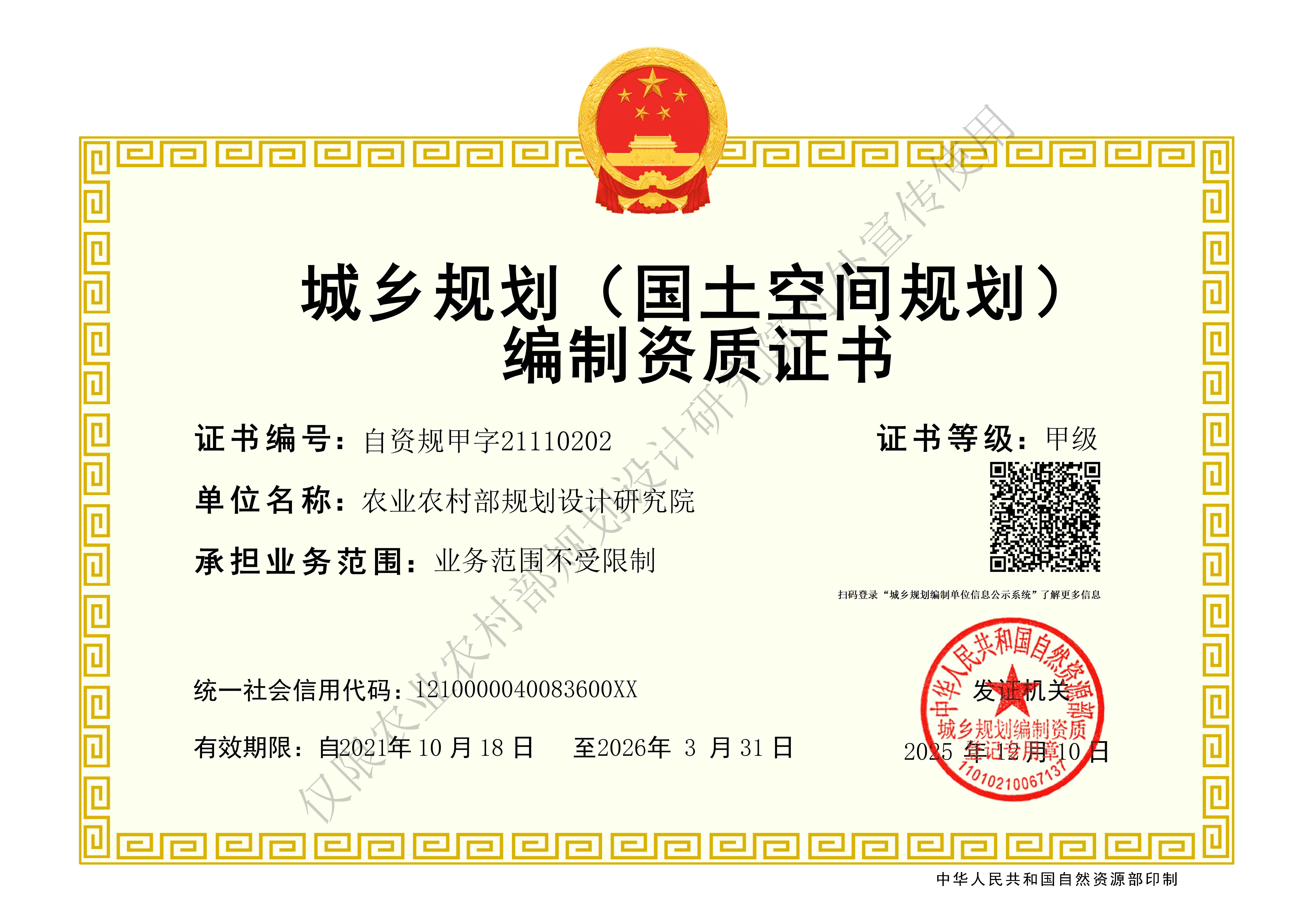 城鄉規劃編制甲級資質證書