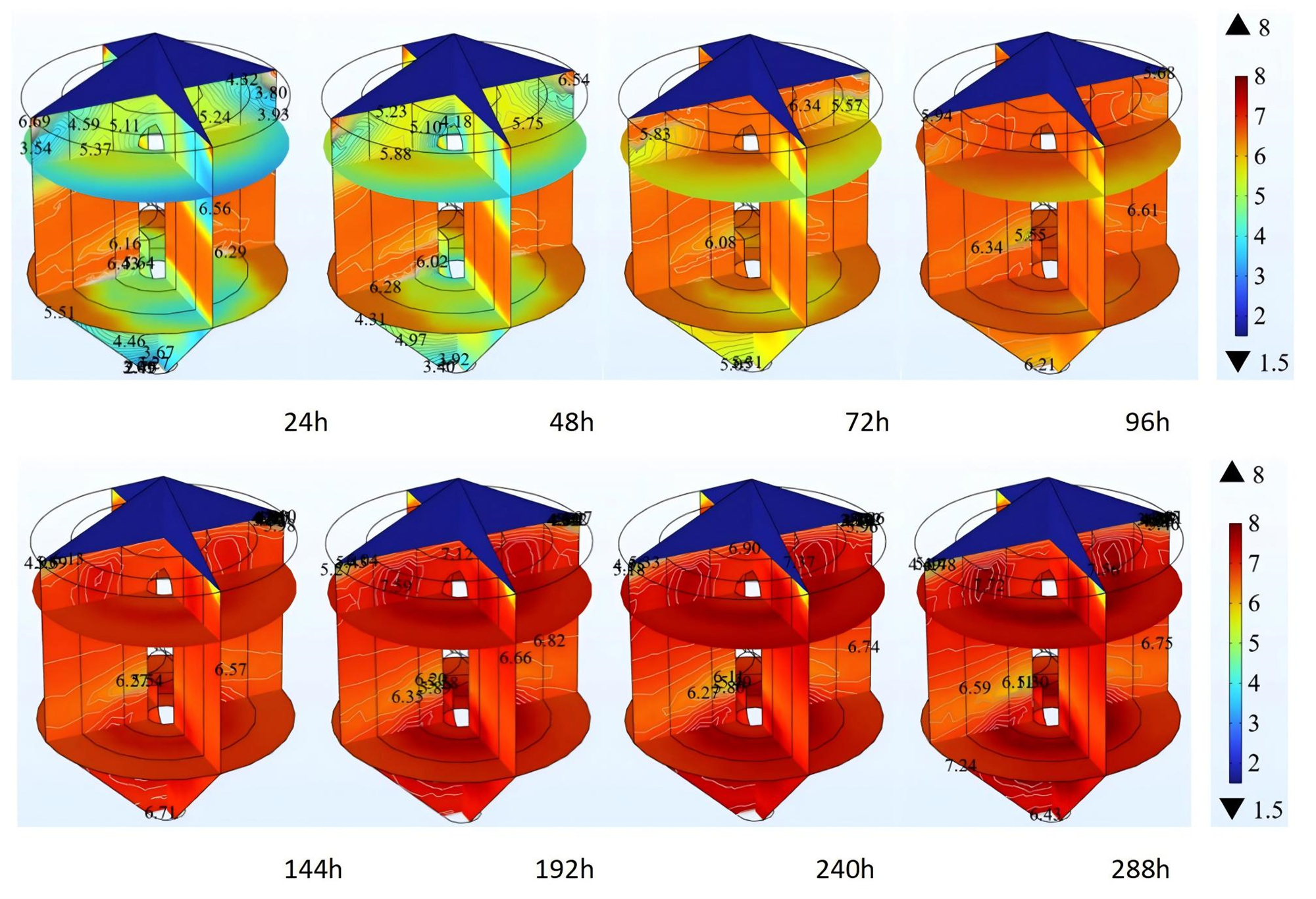 圖2 不同時刻玉米糧堆溫度分布云圖